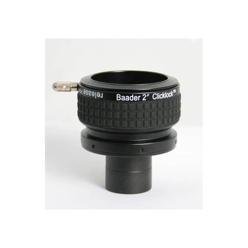 Baader ClickLock 1.25 to 2 inch expansion adapter allowing use of 2 inch eyepieces in 1.25 inch focusers and diagonals. Modular design with internal T2 thread and accessible 2 inch SCT thread. Precise ClickLock system ensures secure locking without screws.