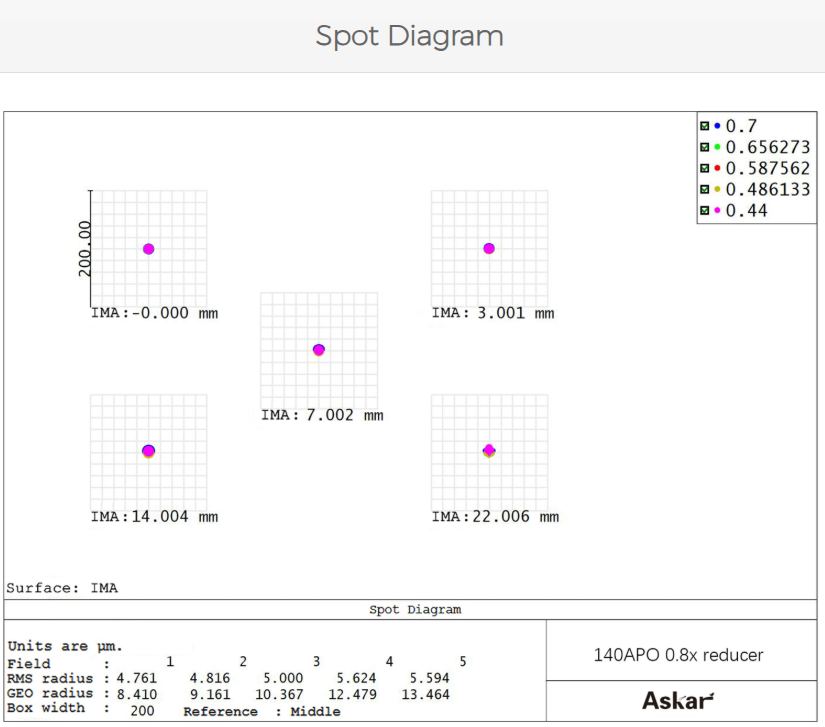 0.8x optical reducer designed for the Askar 140APO refractor. It reduces the focal ratio to f/5.6 and the focal length to 784 mm while providing a corrected full-frame 44 mm image circle. Optimized for wide-field astrophotography with faster exposure times and uniform image quality.