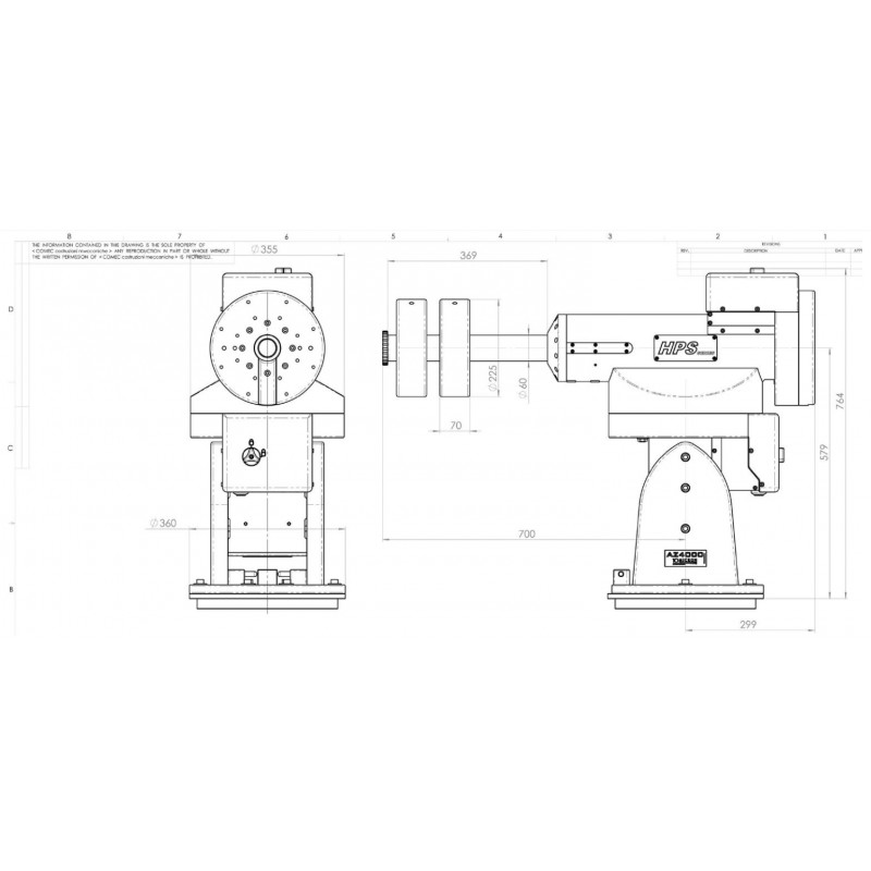 • Worm wheels: 430 teeth (Ø 330 mm, AZ), 315 teeth (Ø 244 mm, ALT), B14 bronze