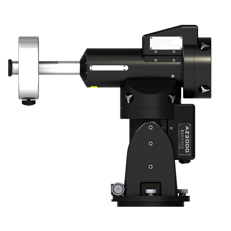 The AZ 2000 HPS Combi is the latest version of the AZ2000 series, based on GM2000 mechanics. It is a highly versatile altazimuth mount for scientific applications such as satellite tracking, photometric and astrometric measurements, LiDaR and more. Due to its alt-az configuration, astrophotography requires a field de-rotator (we recommend PlaneWave IR90 or Optec Gemini) to avoid field rotation and maintain 10Micron tracking precision.