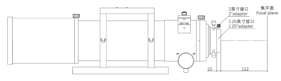 Objective lens: Quadruplet air-spaced APO (one ED glass)