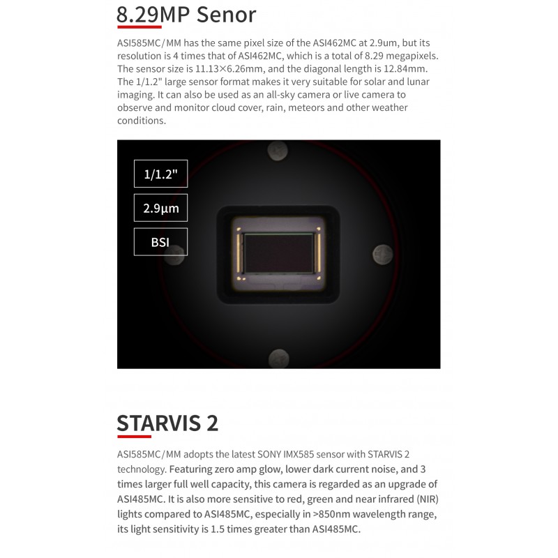 Sensor: Sony IMX585 monochrome, STARVIS 2 technology