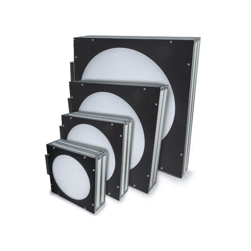 A flicker-free driver enables exposures from 1 ms to several seconds, allowing either ultra-short or extended flats to suit sensor sensitivity. The rigid Minitech 30 mm aluminium frame offers wall, tabletop or rotating-dome installation. When dimmed, the panel provides gentle WRGB lighting for observatory interiors. Power is 12 V DC with breaker protection.