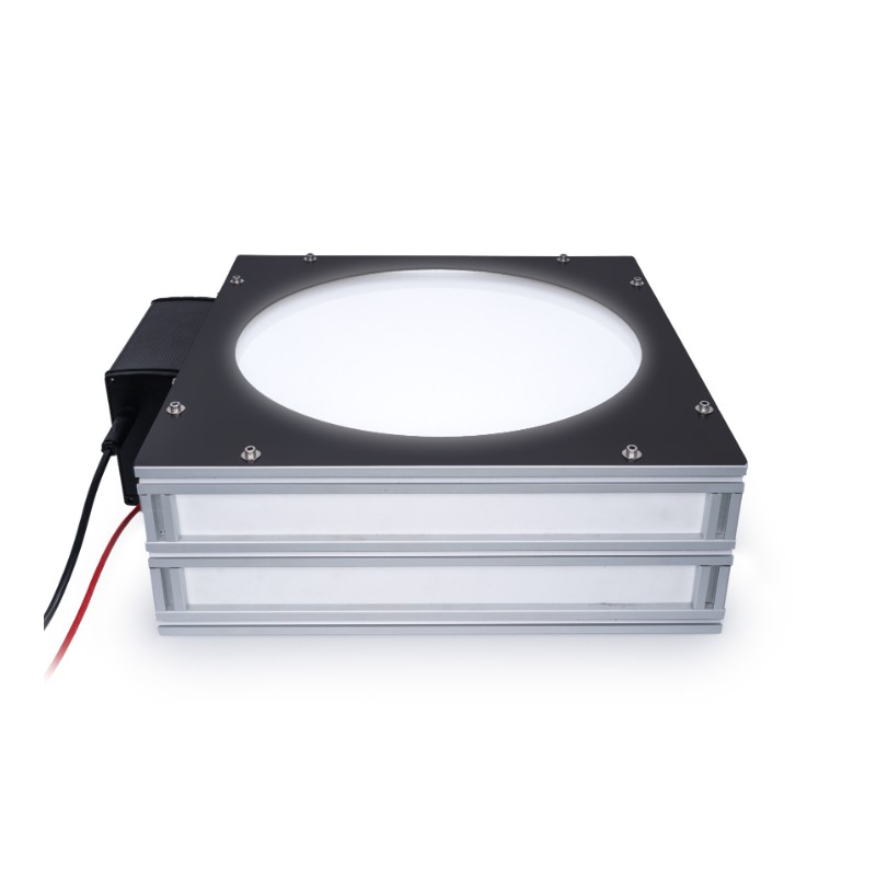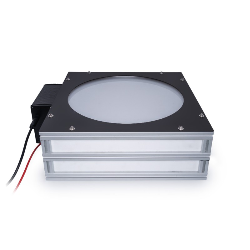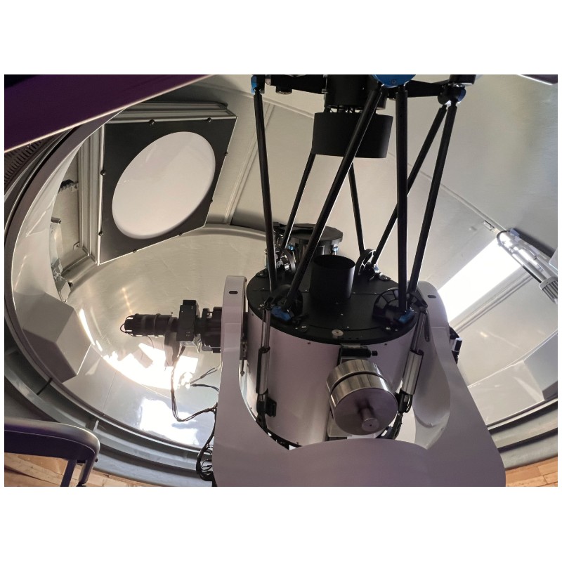 50 mm WRGB flat-field panel, perfectly even illumination, web-controlled brightness, supports telescopes up to 24" fixed or 22" in slit domes.