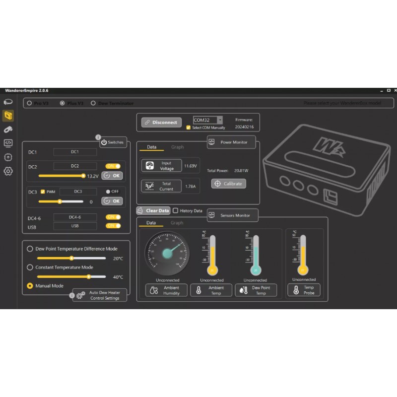 The WandererBox automatically maintains the dew heater at the desired temperature set by the user.