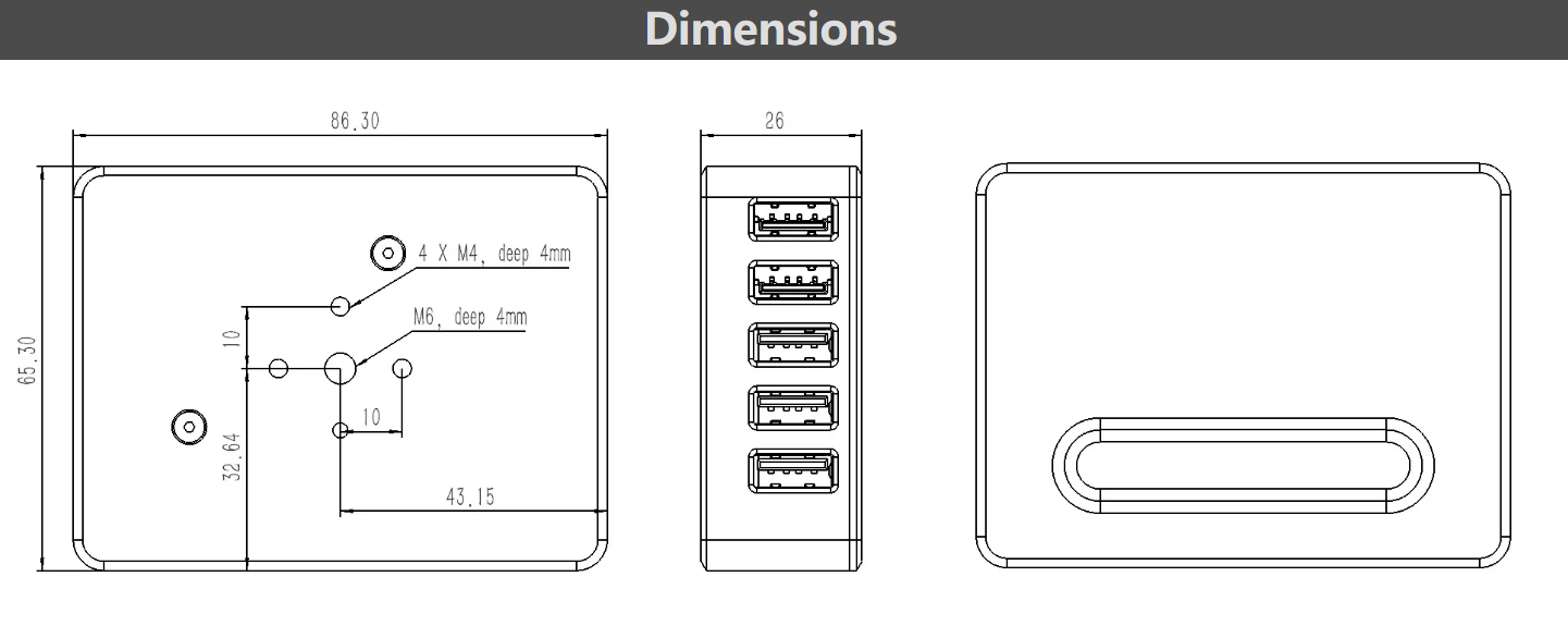 Connectivity includes 2 high-speed USB3.1 ports and 3 USB2.0 ports, all powered by a shared 5 V / 5 A supply.