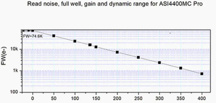 The ASI4400MC Pro offers a dynamic range of up to 13 stops, allowing it to capture both bright highlights and faint shadow details in a single exposure. This wide range is key to achieving high dynamic range (HDR) performance, preserving fine tonal transitions and subtle color detail in deep-sky images. When the gain setting reaches 136, the camera automatically activates HCG (High Conversion Gain) mode, which greatly reduces read noise while maintaining full dynamic range. This means you can increase sensitivity for faint targets without adding unwanted gain noise, making it easier to capture clean, detailed images under a variety of conditions.