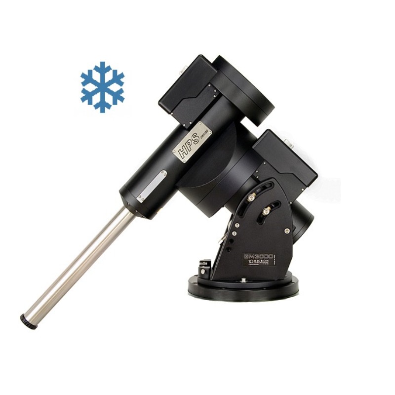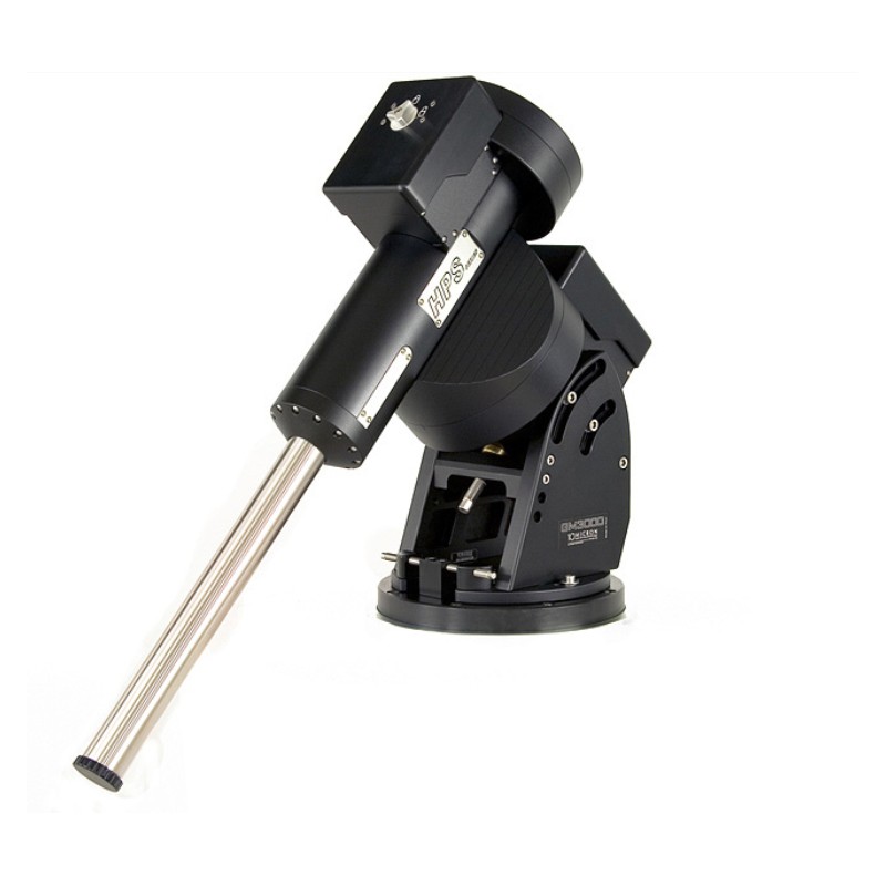The 10Micron GM 3000 HPS is designed for high-end observatories requiring excellent stability and precision at high payload capacity. The mount reaches up to 12°/s satellite tracking speed, with typical pointing accuracy under 20 arcseconds and tracking accuracy of ~1" over 15 minutes (peak-to-peak).