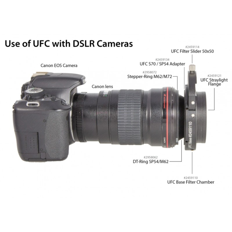 For DSLR users who wish to incorporate 2" filters, the adapter can be combined with the M48i to SP54a filter holder for (D)SLR, enabling easy filter integration into the optical path.