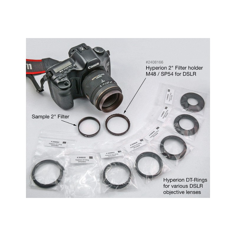 For DSLR users employing 2" filters, it can be paired with the M48i to SP54a filter holder for (D)SLR (#2408166), allowing filter integration directly into the optical path without increasing the eyepiece-to-camera distance.