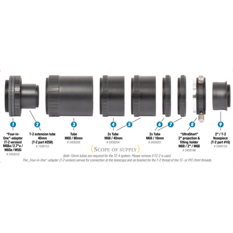 This extension tube can be used alone or combined with other M68 extensions to reach the desired length. It integrates seamlessly into Baader’s modular M68 system, providing compatibility with a wide range of accessories and adapters to other standards, such as Astro Physics 2.7", M60 Vixen, or M56 Synta.
