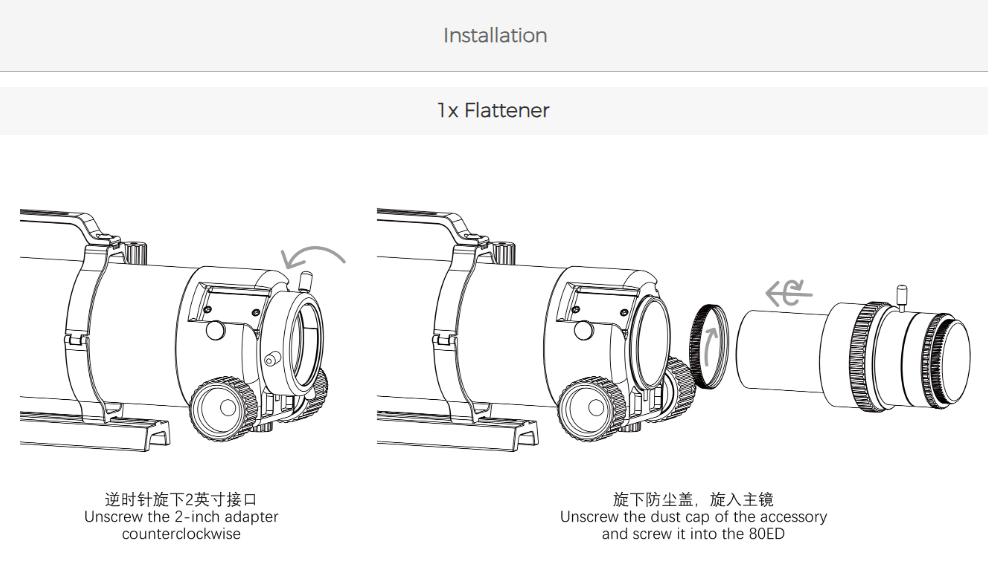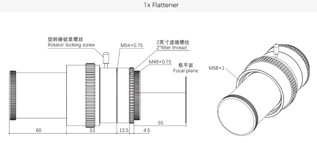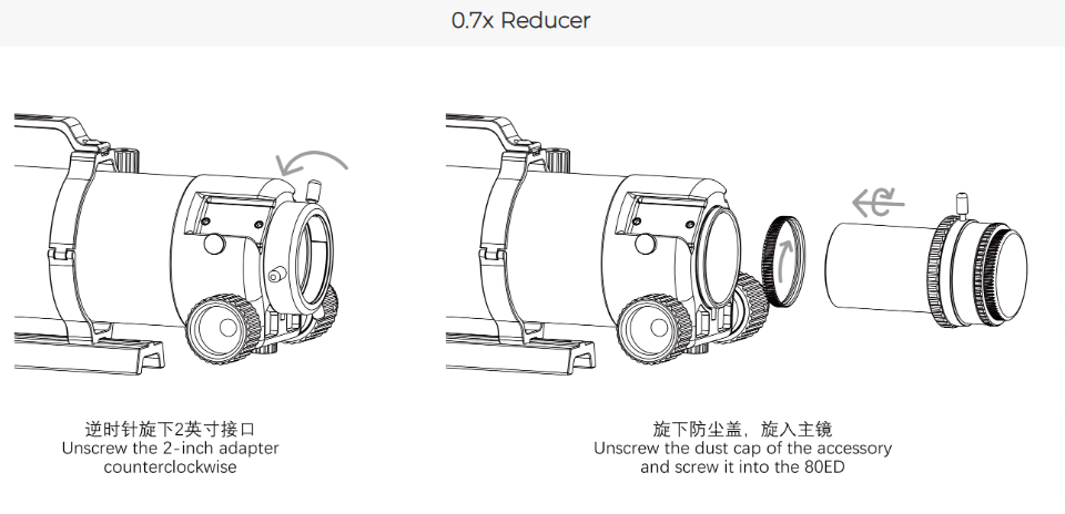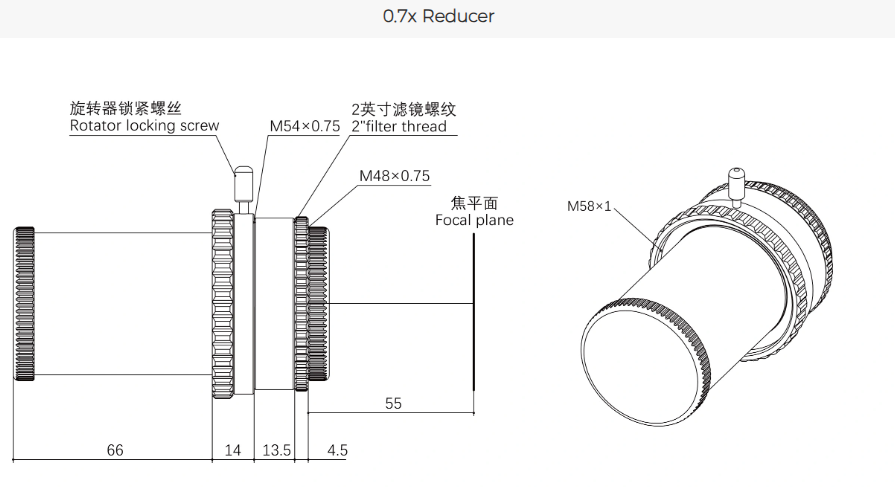 Available accessories : 0.7x reducer, 0.85x reducer, 1.0x flattener