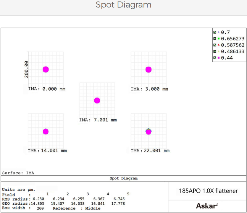The Askar 185APO 1x Full Frame Flattener is specifically designed for the Askar 185APO refractor. It does not alter the telescope’s native focal ratio, which remains f/7 after installation. Its primary function is to correct field curvature and coma, delivering a flat field and finer star shapes across the entire image frame.