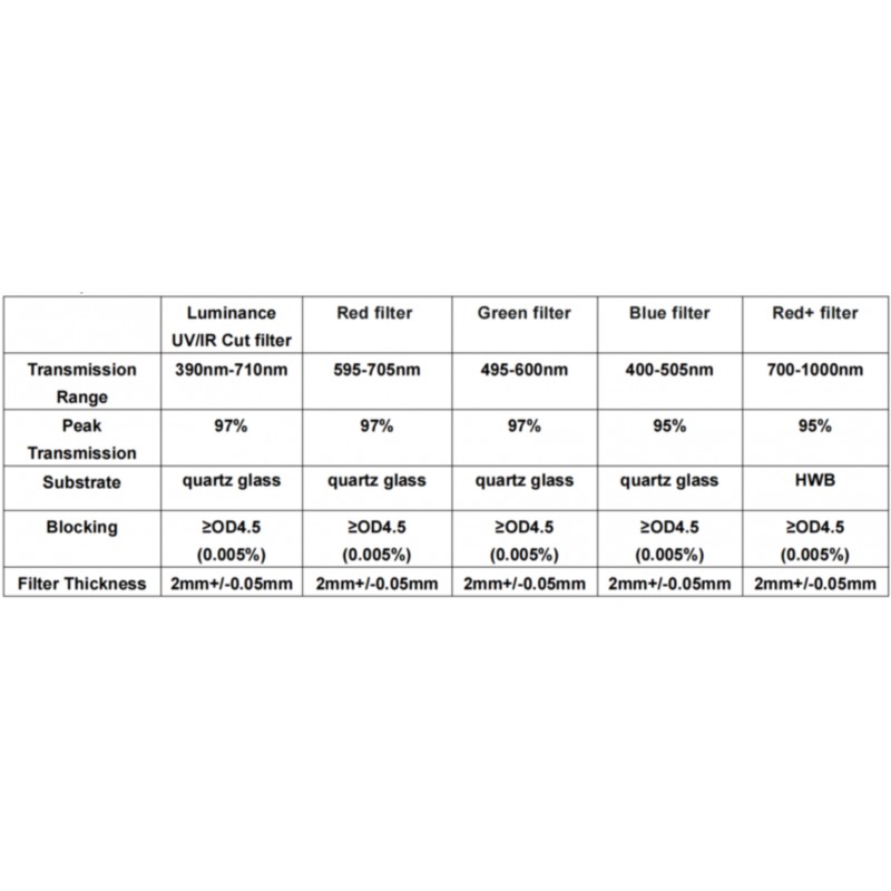 Type: L, R, G, B, and R+ filter set (2’’ mounted)