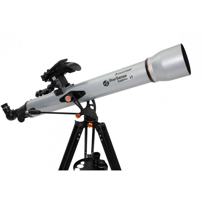 70 mm refractor with StarSense Explorer smartphone guided locating technology. Manual altazimuth mount with slow motion control coated glass optics eyepieces Barlow red dot finder and full height tripod for day and night observation.