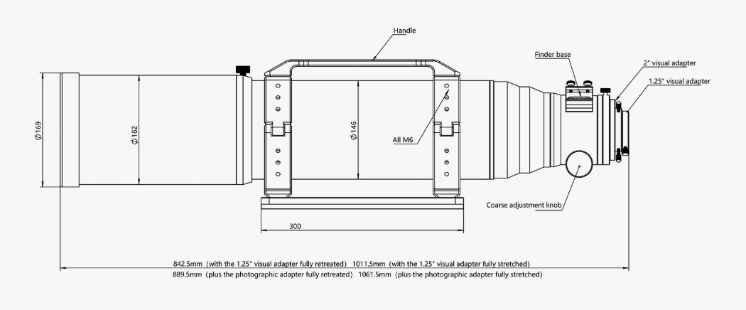 A 3″ 0.7× reducer can be added, shortening the focal length to 700 mm and the focal ratio to f/5.4, effectively reducing exposure time and widening the field. Its multifunction handle, robust tube rings and standard Losmandy dovetail provide a rigid mounting solution compatible with modern equatorial mounts.