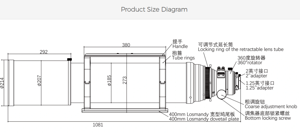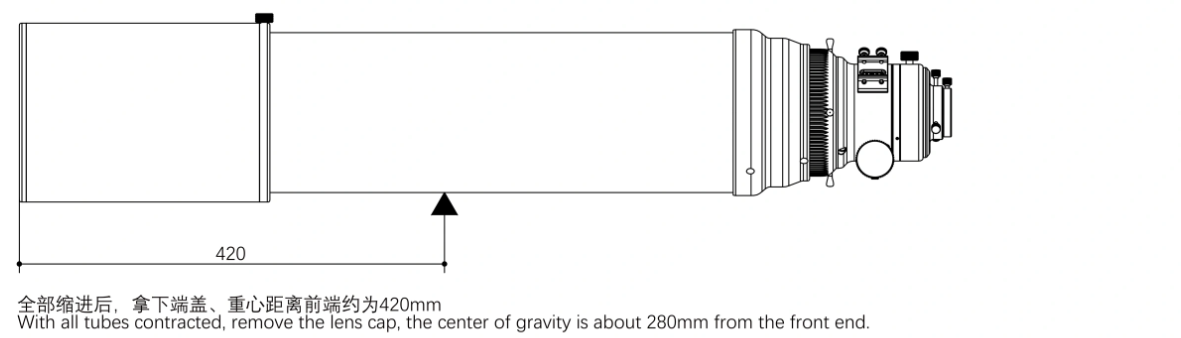 • Total length: 1081 mm with dew shield retracted