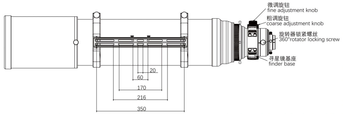 There are two finder bases on each side of the focuser, which eliminates the need for disassembly when changing the position of the finder and provides extra mounting points for other astronomical accessories.