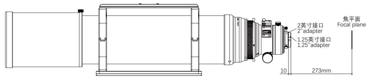 For visual observation, the rear interface of the focuser comes with a 1.25"/2" adapter, allowing the 185APO to reach focus easily when used with 1.25" or 2" diagonals and various eyepieces. Thanks to the retractable optical tube design, it can also be used with a binoviewer for visual observation.