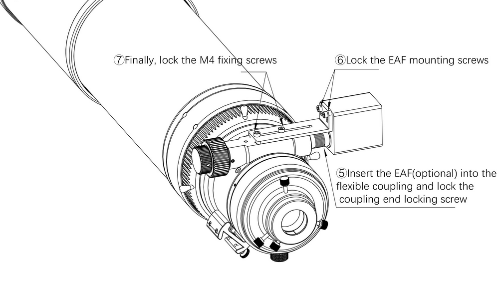 The rear of the focuser features a large 360° precision rotator with graduations that allow easy adjustment and angle memorization, ensuring accurate rotation. It is also equipped with an enlarged locking screw that provides secure tightening even under heavy loads.