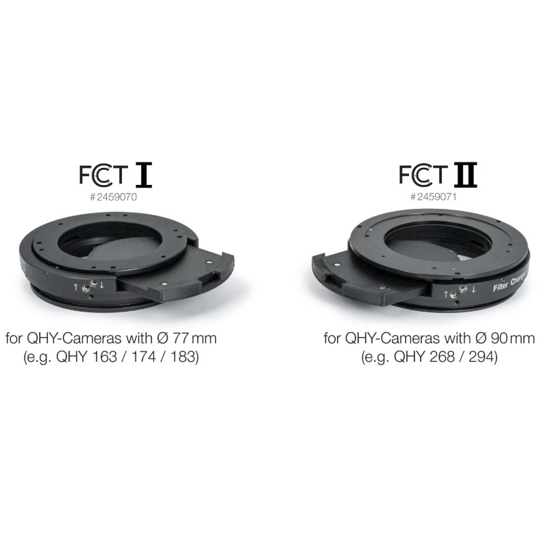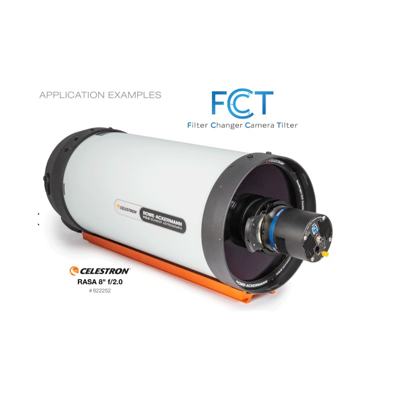 The Baader FCCT I (Filter Changer Camera Tilter) is a compact solution for use with the Celestron RASA 8 telescope and QHY cameras with 77 mm diameter, such as QHY 174, 163 or 183.