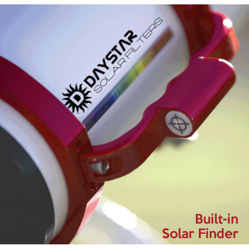 An ergonomic carrying handle also functions as a solar finder, safely projecting the Sun’s image onto a small white screen for alignment.