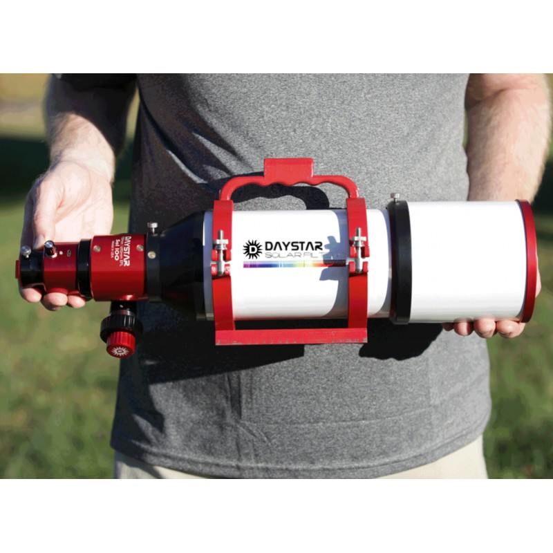 The locking retractable dew shield, CNC-machined aluminum tube, and lightweight construction ensure portability and durability. Fully compatible with DayStar Quark accessories, including 2″ adapters, tilt adapters, focal reducers, and battery systems.