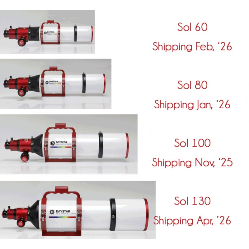 The DayStar Filters Sol 100 mm Dedicated Solar Telescope Chromosphere is a fully integrated professional Hydrogen Alpha telescope optimized for viewing the solar chromosphere.