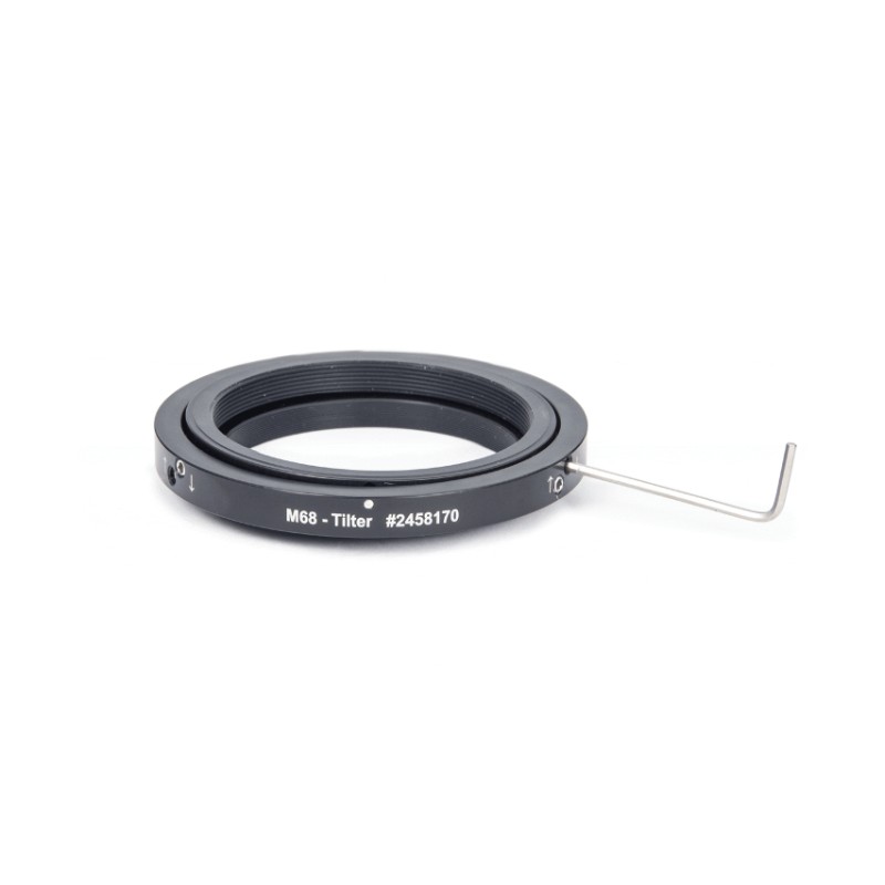 Mechanical camera tilter for Baader M68 system. Corrects image plane tilt up to 1 degree. Optical length adjustable between 9.50 mm and 10.25 mm.
