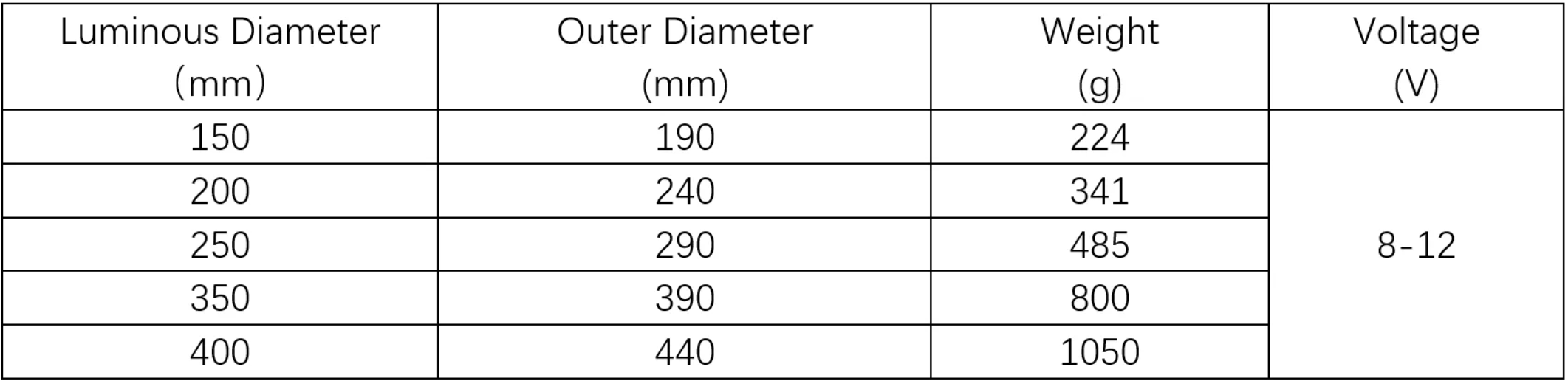 Available sizes: 150 mm, 200 mm, 250 mm, 350 mm, 400 mm