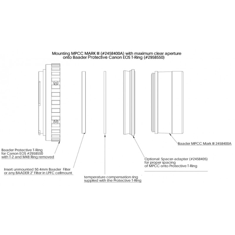 Grâce à cet adaptateur, les utilisateurs peuvent exploiter pleinement la clarté et la performance optique du correcteur MPCC Mark III associé au T-ring Canon Baader.