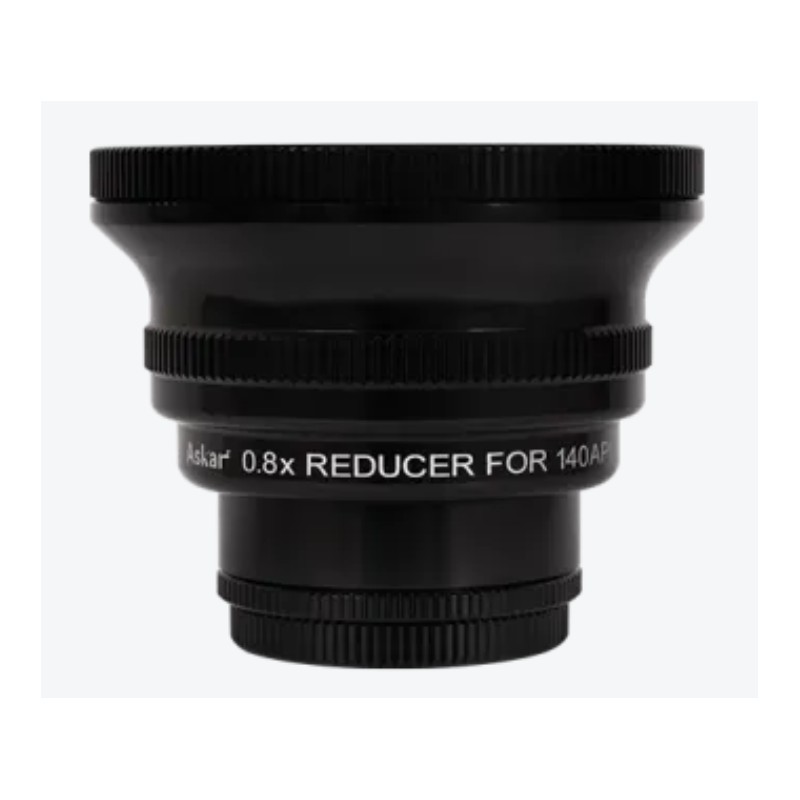 Réducteur optique 0,8x conçu pour la lunette Askar 140APO. Il abaisse le rapport focal à f/5,6 et réduit la focale à 784 mm tout en assurant un champ corrigé pour le plein format 44 mm. Optimisé pour l’astrophotographie grand champ, il offre des temps de pose plus courts et une excellente homogénéité d’image.
