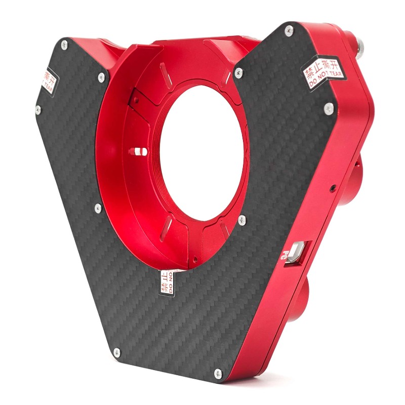 Le WandererAstro ETA M54 libère l’astrophotographe des réglages manuels de tilt et de backfocus. Sa structure imbriquée à double couche évite toute fuite de lumière tout en conservant une rigidité élevée. En montage direct par vis sur les dispositifs côté caméra (par exemple un diviseur optique), il n’occupe que 5 mm de tirage. Trois moteurs indépendants associés à trois codeurs assurent une course de 1.2 mm, une résolution de 0.3 micron par pas et une précision de positionnement de 2 microns, répondant aux exigences des systèmes à rapport focal rapide et des capteurs grand format. L’appareil reste opérationnel entre -25C et 50C. Le collier argenté en façade peut être retiré si le diamètre de l’adaptateur utilisé est supérieur à 76 mm. Le contrôle s’effectue via le logiciel WandererEmpire, avec intégration dans NINA. Les équipements montrés à titre d’exemple d’installation ne sont pas inclus.