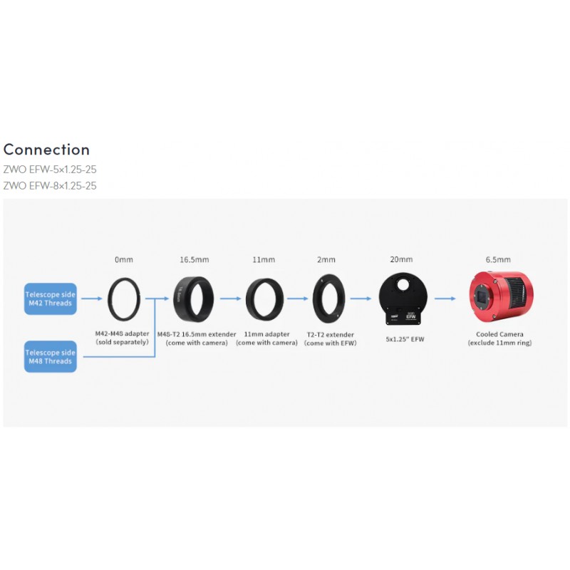 La ZWO EFW 8x31-25 accepte huit filtres non montés de 31 mm et bénéficie d’une conception interne optimisée pour limiter les fuites de lumière. Alimentée uniquement par USB, elle offre une rotation régulière, une structure rigide en aluminium usiné CNC et une compatibilité complète avec ASIAIR, ASIStudio, ASCOM et le SDK ZWO.
