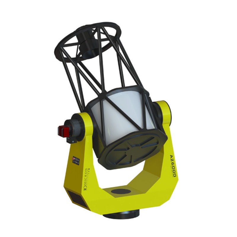La monture 10Micron AZ 6000 DDS (Direct Drive System) est une solution de dernière génération destinée aux applications astronomiques professionnelles et scientifiques. Sa configuration à fourche en mode altazimutal, combinée à des moteurs à entraînement direct sans jeu mécanique et des codeurs absolus de haute résolution, permet une précision de pointage et de suivi inégalée, tout en assurant une grande réactivité pour le suivi d’objets rapides comme les satellites ou les débris spatiaux.