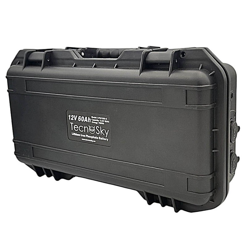Batterie lithium fer phosphate Tecnosky de 60Ah, fiable et puissante. Idéale pour alimenter en toute sécurité caméras, montures et accessoires d'astronomie toute une nuit.