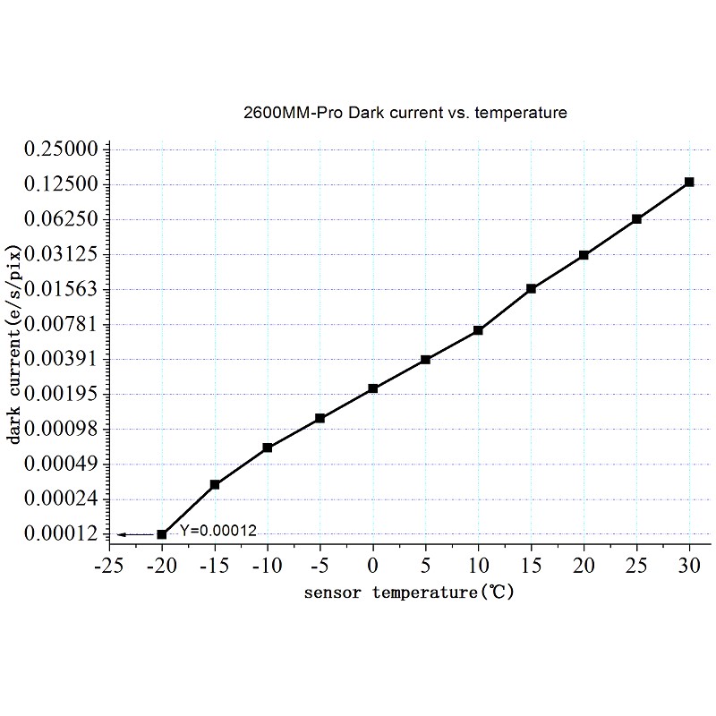 À une température de refroidissement de 0 °C, le courant d’obscurité n’est que de 0,0022 e⁻/s/pixel, ce qui signifie que même avec une pose de 5 minutes (300 s), le bruit total du courant d’obscurité n’est que de 0,7 e⁻, inférieur au bruit de lecture.