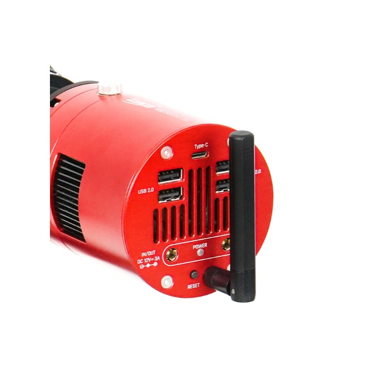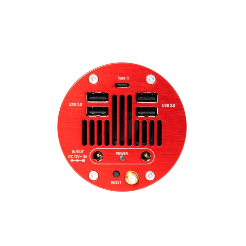 Cette caméra 3-en-1 permet d’imager, guider et contrôler l’ensemble du matériel connecté (monture, roue à filtres, focuser) via une simple connexion mobile ou PC. Elle dispose de 4 ports USB 2.0, d’un port USB-C, de 2 entrées/sorties 12V/10A, et d’une connectivité Wi-Fi double bande (2.4G/5G) + Bluetooth, assurant une stabilité dans un rayon de 20 mètres.