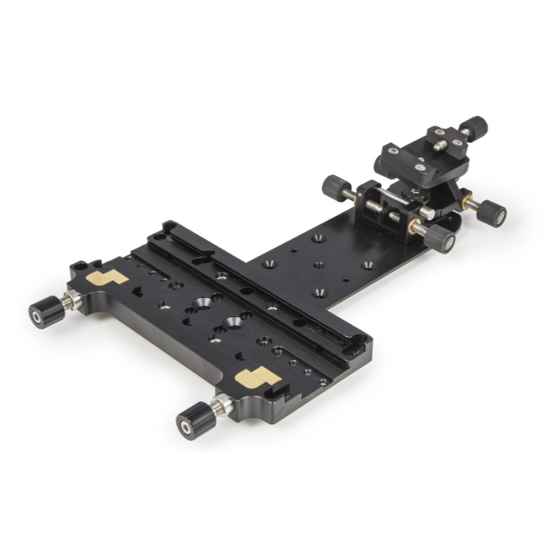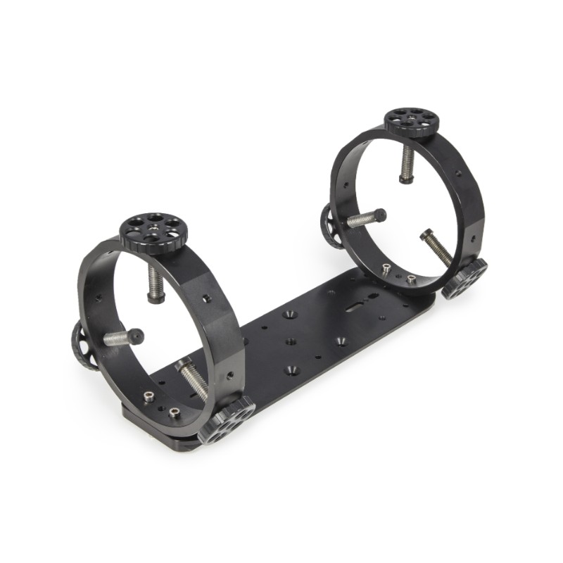 La platine de compensation Baader permet d’installer deux instruments optiques avec queues d’aronde au format Vixen sur une monture unique. L’assemblage tangentiel Stronghold intégré assure un alignement précis entre les deux tubes optiques, ce qu’un montage parallèle classique ne peut pas garantir.