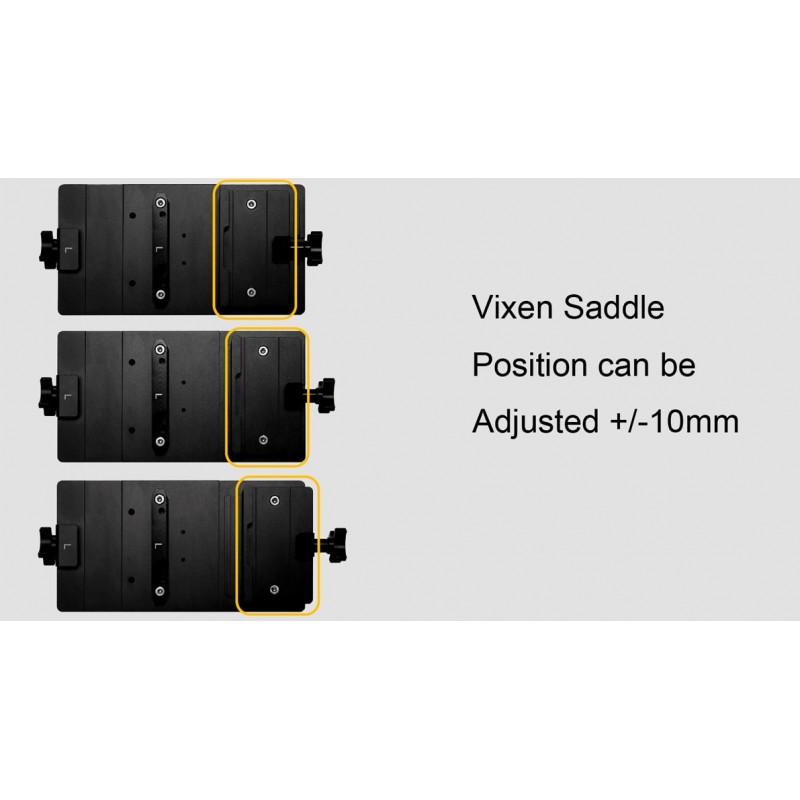 Les positions des mâchoires ainsi que de la platine sont ajustables afin d’optimiser l’équilibrage, notamment lors de l’utilisation de charges asymétriques ou d’accessoires complémentaires. Ce système est adapté aussi bien à l’astrophotographie qu’à l’observation visuelle.
