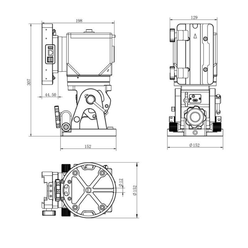 Grâce à ses ports intégrés (3 x sorties 12 V DC, 2 x USB 2.0, 1 x USB 3.0) et sa mémoire 32 Go eMMC extensible par micro-SD jusqu’à 64 Go, la monture offre un fonctionnement autonome et sans câbles pendants.