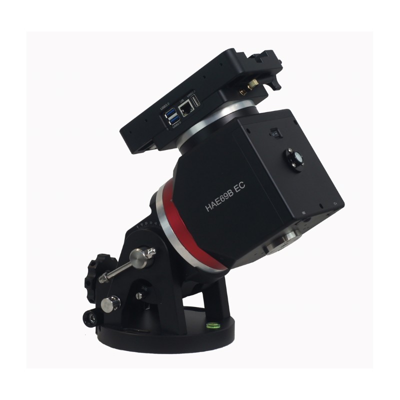 La monture iOptron HAE69B EC AZ/EQ SWG avec ordinateur iMate intègre un système Strain Wave Gear haute précision et un encodeur sur l’axe RA. Compacte et puissante, elle supporte 31 kg pour 9 kg de masse et fonctionne sans raquette, avec un contrôle informatique complet.
