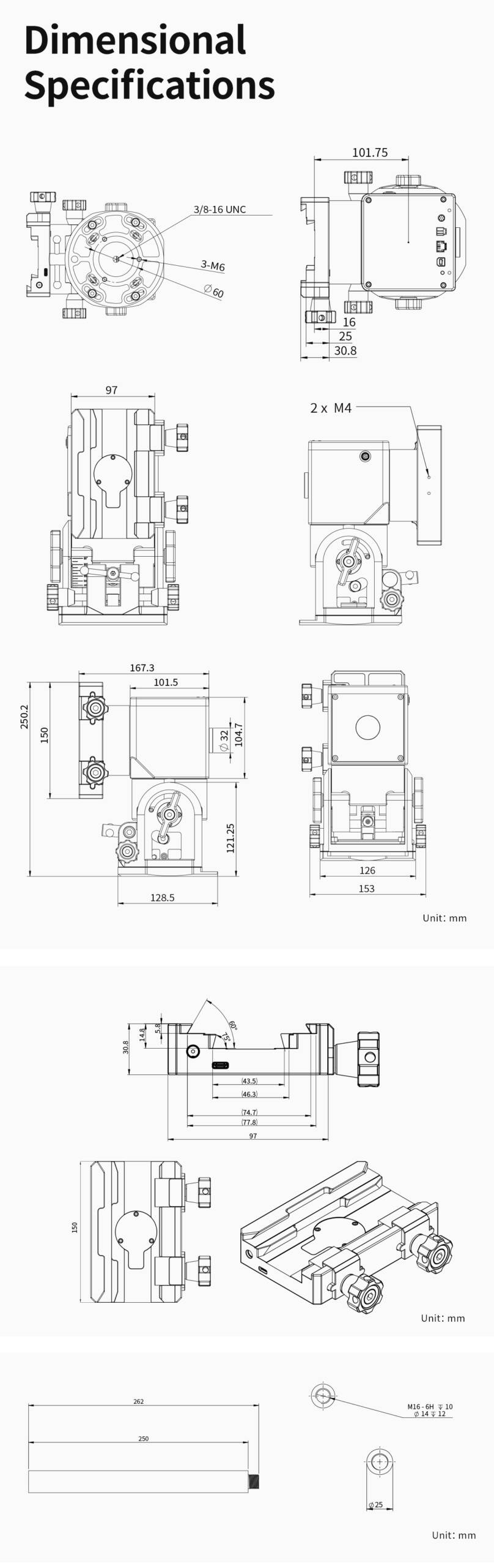 La molette de serrage de la queue d’aronde ainsi que la molette de réglage fin de l’azimut disposent d’une structure creuse. Lorsque la rotation manuelle devient limitée, il est possible d’y insérer une clé hexagonale afin d’obtenir un meilleur bras de levier, rendant les ajustements plus faciles, plus précis et plus fiables avec moins d’effort.