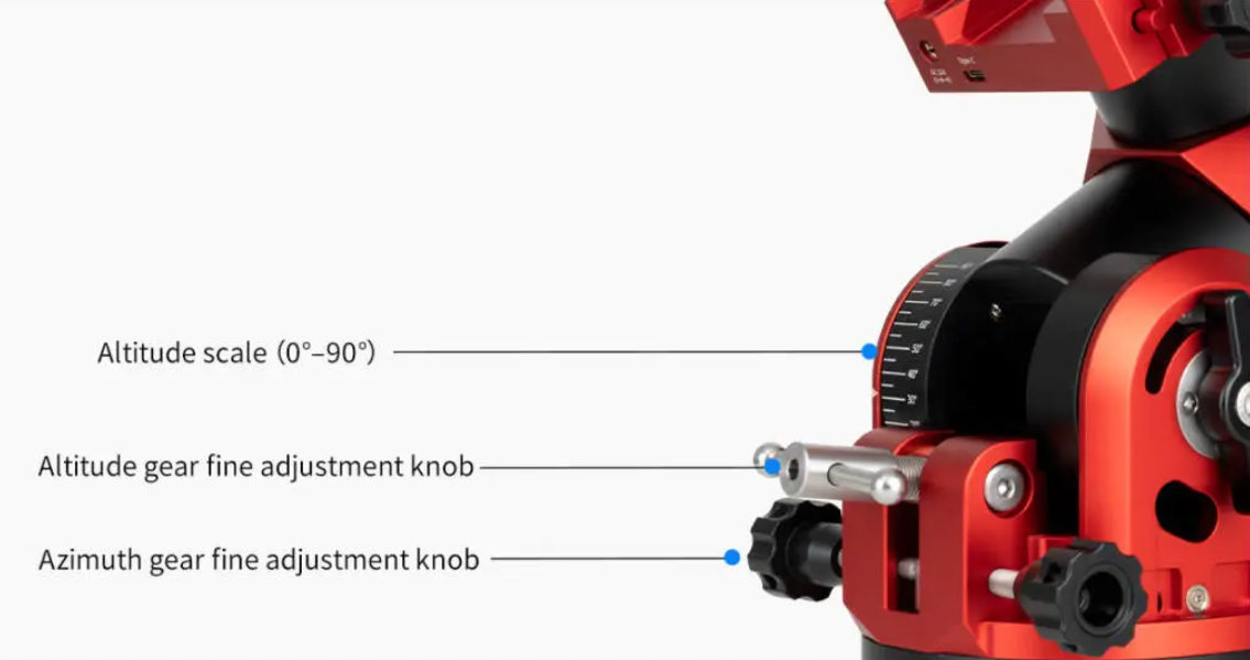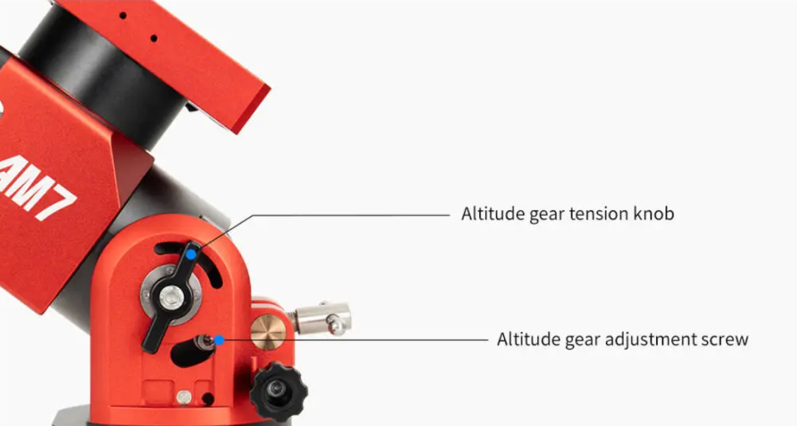 L’AM7 offre une plage complète de réglage de latitude de 0 à 90 degrés, ce qui permet son alignement et son utilisation pratiquement partout sur Terre, de l’équateur jusqu’aux pôles. Cela en fait un choix particulièrement pratique aussi bien pour les déplacements que pour une installation permanente, quel que soit votre lieu d’observation.