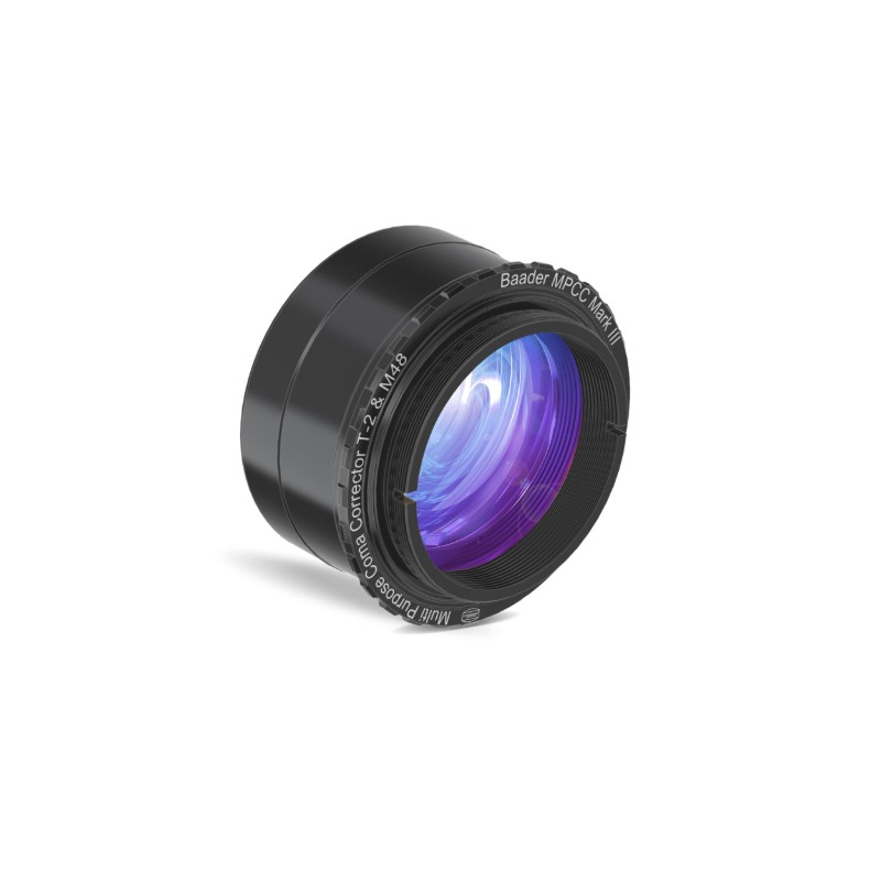 Le MPCC Mark III offre une compatibilité étendue avec les bagues T standard ou les bagues Baader EOS Protective T-ring. Compact et précis, il garantit une correction optimale jusqu’aux bords du champ pour capteurs APS-C et plein format.
