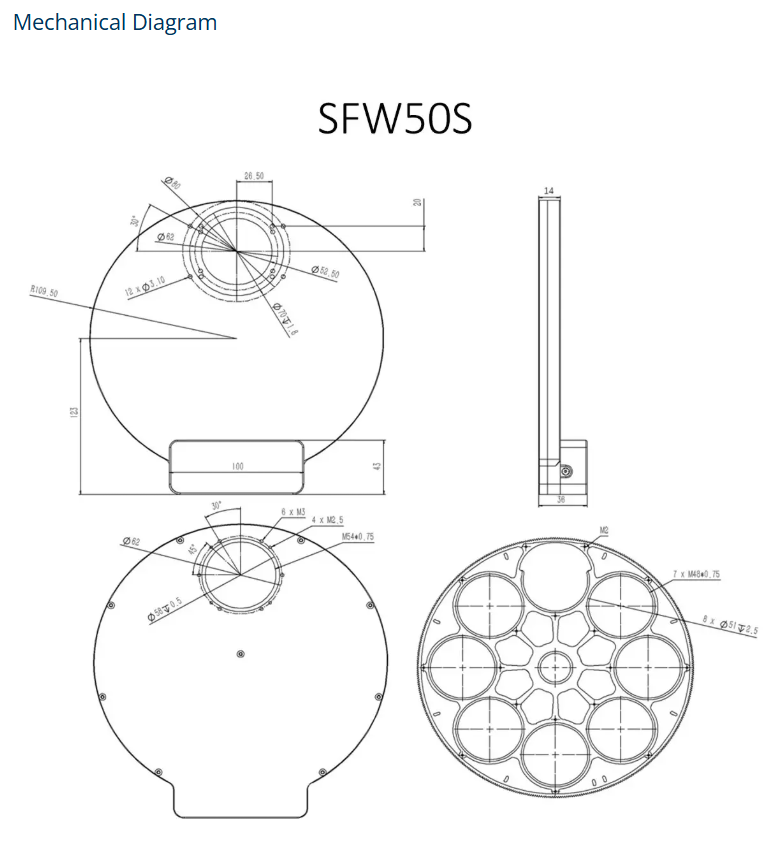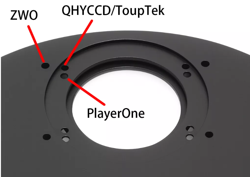 La roue à filtres Snowflake dispose de trous de fixation polyvalents et compatibles, prenant en charge les caméras ZWO, QHY, ToupTek ainsi que les caméras PlayerOne APS-C et plein format, et la plupart de leurs diviseurs optiques hors axe. Elle intègre également une rainure encastrée spécialement conçue pour accueillir les caméras QHYCCD sans augmenter le tirage mécanique.