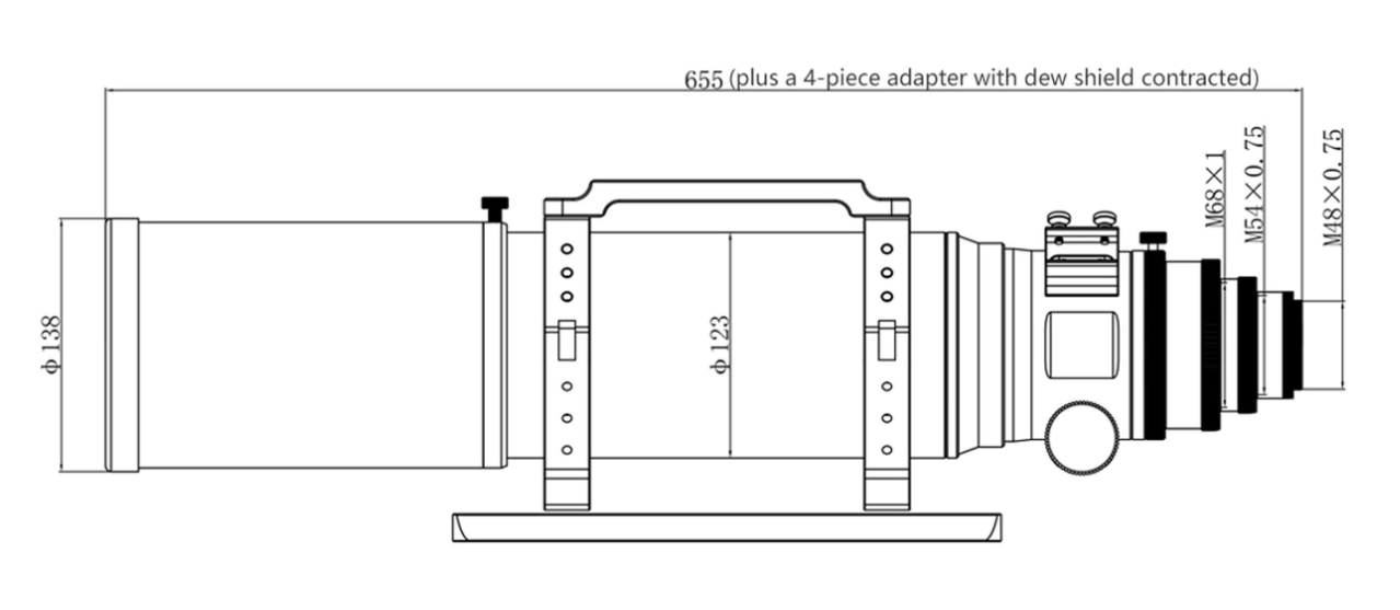 Avec un rapport focal de f/7 et une conception optique à quatre lentilles dont deux éléments en verre ED, il réduit efficacement l’aberration chromatique et offre une excellente restitution des couleurs. En observation visuelle, il conserve une bonne correction chromatique même à des grossissements atteignant 300×.