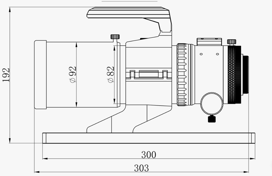Le FRA300 Pro est livré avec une poignée multifonction et une queue d’aronde type Vixen de 300 mm compatible avec de nombreuses montures. La poignée peut accueillir une base de chercheur standard et la queue d’aronde assure un équilibre efficace sur la monture.