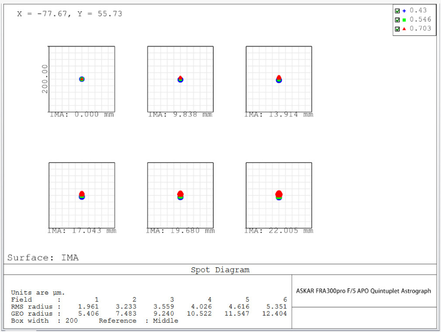 La finesse des étoiles est remarquable. Au centre du champ, le rayon RMS atteint 2 µm, un niveau de précision qui satisfait même les utilisateurs les plus exigeants concernant la forme et la netteté des étoiles. Ses performances sont excellentes sur capteur plein format avec un cercle image de 44 mm, ce qui en fait un instrument rare dans cette catégorie. Comparé à F6 ou F7, F5 réduit efficacement le temps d’exposition, permettant d’obtenir davantage d’images en moins de temps. L’ensemble du tube optique est compact, ce qui en fait un choix idéal pour l’astrophotographie nomade.