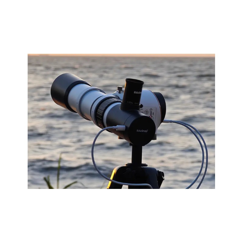 Le système de localisation intelligent construit en temps réel une sphère céleste virtuelle et calibre automatiquement sa position, supprimant les réglages manuels complexes des télescopes classiques. Grâce à l’application EduSnap Astro (Android et iOS), l’utilisateur peut contrôler l’appareil via une connexion Wi-Fi double bande (2,4 et 5,8 GHz), enregistrer et traiter les images sur la mémoire interne de 32 Go.